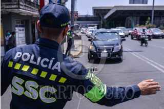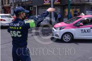 CIUDAD DE MÉXICO, 05ABRIL2022.- A partir del 4 de abril la policía de tránsito de la Secretaría de Seguridad Ciudadana (SSC) renovó su uniforme, el cual incluye el brazalete verde fosforescente un código QR que permitirá identificar al elemento y la leyenda "Autorizado para infraccionar". FOTO: MARIO JASSO/CUARTOSCURO.COM
