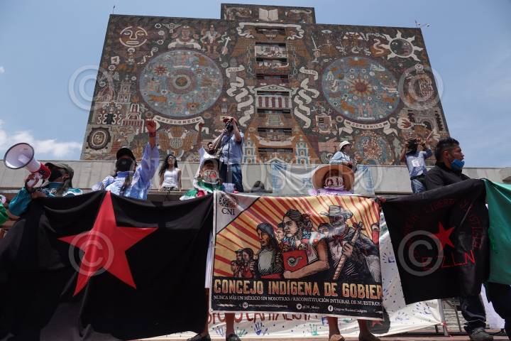 CIUDAD DE MÉXICO, 05ABRIL2022.- Integrantes de la Caravana por el Agua y por la Vida, llegaron al plantón de las Mazatecas por la Libertad para continuar con su ruta, en la que realizaron un mitin afuera del plantón, exigieron que el agua no se venda enfrente de la Comisión Nacional del Agua (CONAGUA) y finalizaron protestando afuera de la Biblioteca Central de Ciudad Universitaria. FOTO: GRACIELA LÓPEZ /CUARTOSCURO.COM