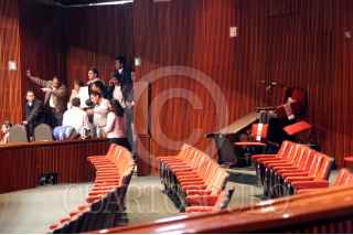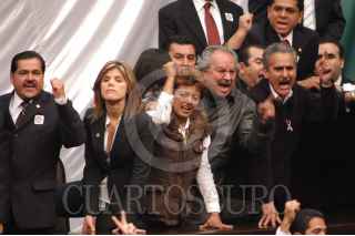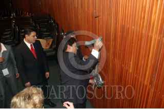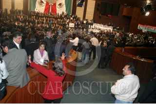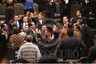 MEXICO, D.F, 01DICIEMBRE2006,- Los diputados del Frente Amplio Progesista realizaron una barricada con la curules y cerrando las entradas con cadenas y candados para tratar de impedir el acceso a la toma de protesta del presidente electo Felipe Calderón, los diputados piden que no intete le paso al diputado José Muart. FOTO: GUILLERMO PEREA/CUARTOSCURO.COM