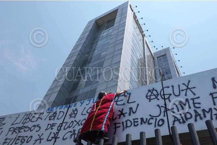 CIUDAD DE MÉXICO, 05ABRIL2022.- Integrantes de la Caravana por el Agua y por la Vida, llegaron al plantón de las Mazatecas por la Libertad para continuar con su ruta, en la que realizaron un mitin afuera del plantón, exigieron que el agua no se venda enfrente de la Comisión Nacional del Agua (CONAGUA) y finalizaron protestando afuera de la Biblioteca Central de Ciudad Universitaria. FOTO: GRACIELA LÓPEZ /CUARTOSCURO.COM