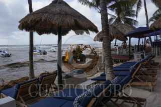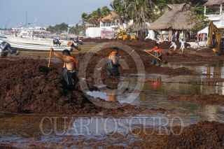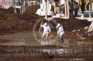 PLAYA DEL CARMEN, QUINTANA ROO, 06ABRIL2022.- El recale masivo de sargazo a la Riviera Maya, comenzó a afectar a prestadores de servicios turísticos, a una semana del inicio del periodo vacacional de la Semana Santa. De acuerdo con la Red de Monitoreo del Sargazo, los focos rojos de afectación de la macro alga comienza desde los linderos de la zona hotelera de Cancún hasta Tulum, así como la parte trasera de la isla de Cozumel. Los prestadores de servicios turísticos, han solicitado ya la intervención de las autoridades federales para contrarrestar la afectación. En la imagen, corresponden a la Playa El Recodo que ha sido de las mas afectadas en Playa del Carmen. FOTO: ELIZABETH RUIZ/CUARTOSCURO. COM