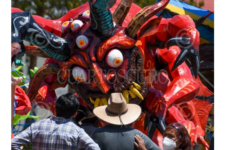 TOLUCA, ESTADO DE MÉXICO, 06ABRIL2022.- 60 Judas elaborados por artesanos de Almoloya de Juárez, Metepec, Toluca, Lerma, CDMX participan en la edición número 29 del Concurso de Judas del Museo Taller Nishizawa, que desde el año pasado se han instalado en la explanada del Centro Cultural Mexiquense como parte de las medidas ante la pandemia por COVID-19, buscando un lugar al aire libre, este jueves se darán a conocer los ganadores, que consisten en 10 lugares y 5 menciones honoríficas; este año algunas de las temáticas que trataron en los Judas son la Guerra en Ucrania, COVID-19, inseguridad, temas políticos, censura y ataques a medios de comunicación, tradiciones populares, entre otros. FOTO: CRISANTA ESPINOSA AGUILAR/CUARTOSCURO.COM