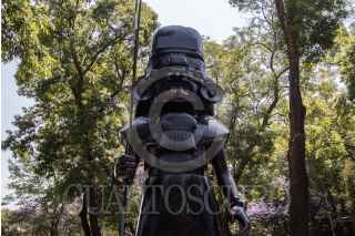 CIUDAD DE MÉXICO, 06MARZO2022.- Sabino Guisu, artista originario de Juchitán de Zaragoza, escultor de la deidad zapoteca Pitao Cocijo instalada en Roma. La pieza, de 5. 1 metros de altura forma parte del proyecto “Cocijo”, que Gisu comenzó en 2019 y que ya ha sido expuesto en la galería Maia de la colonia Roma. FOTO: ANDREA MURCIA /CUARTOSCURO.COM