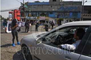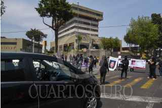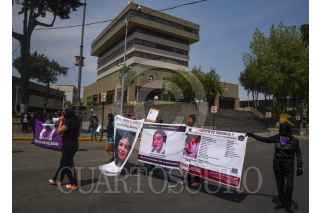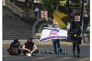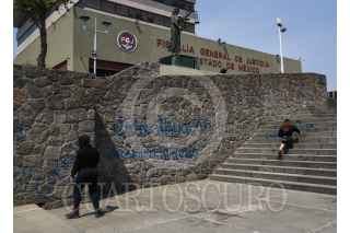 TOLUCA, ESTADO DE MÉXICO, 06ABRIL2022.- Colectivas feministas se manifestaron en la Fiscalía General de Justicia del Estado de México en apoyo a mujeres de Chimalhuacán que fueron golpeadas y lesionadas por policías municipales y estatales durante el desalojo de un plantón que se mantenía en el Centro de Justicia de Chimalhuacán de la FGJEM el pasado fin de semana, exigiendo justicia y castigo a los culpables. FOTO: CRISANTA ESPINOSA AGUILAR /CUARTOSCURO.COM