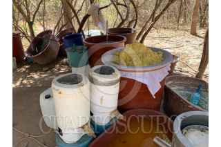 TAMAZULA, DURANGO, 06ABRIL2022.- La Secretaría de la Defensa Nacional, hace del conocimiento que el 4 de abril del presente año, elementos militares realizaron el aseguramiento de 3 laboratorios clandestinos, para la elaboración de droga sintética en el estado de Durango. Derivado de la planeación y los trabajos de inteligencia para detectar organizaciones criminales con presencia en esa entidad, así como de la interpretación de imágenes satelitales, el personal militar en aplicación del Programa de Erradicación Intensiva 2022, desplegó fuerzas de reacción en el municipio de Tamazula, logrando localizar mediante reconocimientos terrestres tres laboratorios clandestinos. FOTO: SEDENA/CUARTOSCURO.COM
