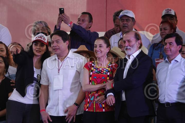 CIUDAD DE MÉXICO, 06ABRIL2022.- Claudia Sheinbaum, jefa de Gobierno, acompañada de funcionarios del Partido de Morena, encabezó la Asamblea para promover el voto para la revocación de mandato del Presidente de México, Andrés Manuel López Obrador, la cual se llevará a cabo el próximo 10 de abril. El acto se realizó en el Monumento a la Revolución. FOTO: GRACIELA LÓPEZ /CUARTOSCURO.COM