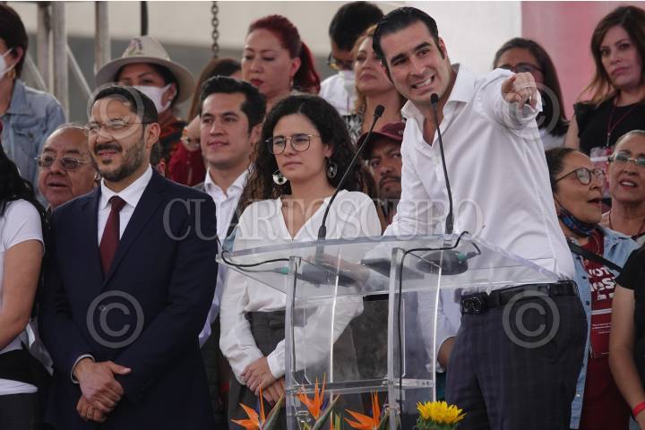 CIUDAD DE MÉXICO, 06ABRIL2022.- Claudia Sheinbaum, jefa de Gobierno, acompañada de funcionarios del Partido de Morena, encabezó la Asamblea para promover el voto para la revocación de mandato del Presidente de México, Andrés Manuel López Obrador, la cual se llevará a cabo el próximo 10 de abril. El acto se realizó en el Monumento a la Revolución. FOTO: GRACIELA LÓPEZ /CUARTOSCURO.COM