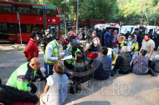 CIUDAD DE MÉXICO, 07ABRIL2022.- Choque de camión de trasporte público del corredor Atrolsa contra el Metrobus Línea 7, sobre la avenida Reforma y Circuito Gandhi, colonia Lomas de Chapultepec, en la alcaldía Miguel hidalgo, con un saldo más de 50 heridos. FOTO: ROGELIO MORALES/CUARTOSCURO.COM