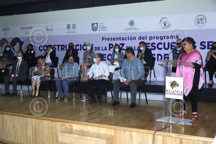 CIUDAD DE MÉXICO, 07ABRIL2022. Presentación del programa “Construcción de la paz en las escuelas secundarias, empecemos desde casa”, en la alcaldía Iztapalapa. Al acto asistieron la Fiscal General de Justicia de la Ciudad de México Ernestina Godoy y la alcaldesa de Iztapalapa Clara Brugada. FOTO: EDGAR NEGRETE/CUARTOSCURO.COM