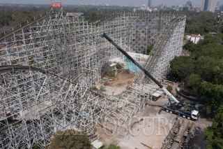 CIUDAD DE MÉXICO, 07ABRIL2022.- Trabajadores de obras comenzaron con el desmantelamiento de la montaña rusa, juego mecánico característico de lo que fue "La Feria de Chapultepec". En el lugar será construido el proyecto urbano "Parque Aztlán" el cual se contempla sea terminado en 2023. FOTO: MARIO JASSO/CUARTOSCURO.COM