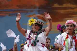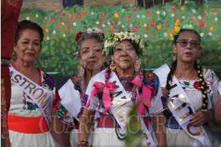 CIUDAD DE MÉXICO, 07ABRIL2022.- Adultas Mayores participaron en el desfile del concurso de la Flor más Bella del Ejido 2022 en la explanada de la alcaldía Xochimilco. FOTO: GRACIELA LÓPEZ /CUARTOSCURO.COM