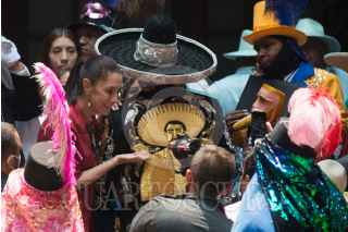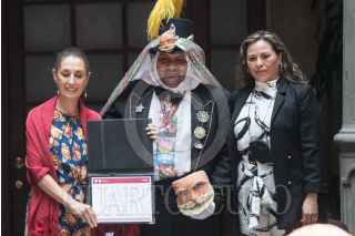 CIUDAD DE MÉXICO, 08ABRIL2022.- Claudia Sheinbaum Pardo, jefa de Gobierno, en compañía de Martí Batres, secretario de Gobierno capitalino, y la diputada Mónica Fernández, encabezaron la entrega de Reconocimientos a Representantes de Carnavales y Comparsas en la Ciudad de México. FOTO: MARIO JASSO/CUARTOSCURO.COM