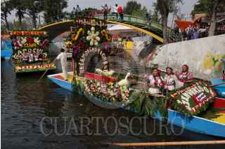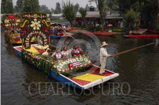 CIUDAD DE MÉXICO, 08ABRIL2022.- En el marco de la Fiesta de la Flor más Bella del Ejido 2022 se realizó el concurso de la Canoa Alegórica, la cual incluyó un recorrido turístico por el Nuevo Embarcadero de Nativitas para que el público apareciera la exhibición de las trajineras. En el concurso participaron 10 embarcaciones que fueron adornadas de manera artesanal cuyas figuras alusivas al medio ambiente, figuras prehispánicas y elementos del Xochimilco antiguo. Durante el evento estuvo presente José Carlos Acosta Ruíz, alcalde de Xochimilco, y Nelson Ocaña Rodríguez, consejero de la Embajada de Cuba. Las canoas ganadoras fueron primer lugar "Margarita"; segundo lugar "Colorin", y tercer lugar "Tulipan", quienes recibieron premios por 4p mil, 30 mil y 20 mil pesos respectivamente. FOTO: GRACIELA LÓPEZ /CUARTOSCURO.COM