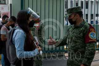 NAUCALPAN, ESTADO DE MÉXICO, 08ABRIL2022.- Desde el pasado 06 de abril y hasta el 26 del presente mes, 18 mil 467 aspirantes a ingresar a un plantel de educación militar realizaron los exámenes cultural y psicológico en el Campo Militar No.1 de la capital del país. Las y los jóvenes acuden a la base militar en dos bloques, matutina y vespertino, y tardan alrededor de cuatro horas en culminar ambas pruebas. Una vez finalizadas las evaluaciones deberán esperar los resultados que se publican en mayo y en caso de ser seleccionados continuar con su proceso de admisión. FOTO: GALO CAÑAS/CUARTOSCURO.COM
