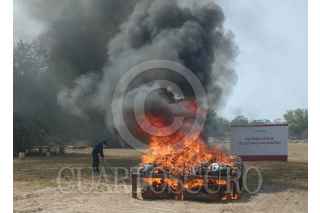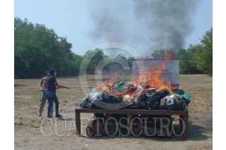 PUERTO CHIAPAS, CHIAPAS, 08ABRIL2022.- La Secretaría de Marina en apoyo con la Fiscalía Especializada en Materia de Delincuencia Organizada (FEMDO), llevaron a cabo la incineración de más de 716 kilogramos de clorhidrato de cocaína. en la Décimo Cuarta Zona Naval. Esta acción se realizó en el marco del Plan Nacional de Paz y Seguridad, producto del aseguramiento de una embarcación localizada a 132 millas náuticas aproximadamente al Suroeste de Puerto Chiapas, el pasado 17 de febrero de 2022, en el área geoestratégica de la Octava Región Naval. FOTO: SEMAR/CUARTOSCURO.COM