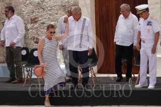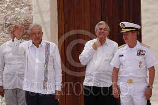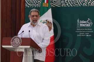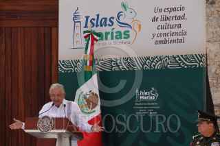 ISLAS MARÍAS, NAYARIT, 09ABRIL2022.- Andrés Manuel López Obrador, presidente Constitucional de los Estados Unidos Mexicanos, realizó una visita en el Museo de sitio en la Reserva Biosfera de las Islas Marías. En el evento lo acompañaron su esposa Beatriz Gutiérrez Müller; Rafael Ojeda Durán, secretario de Marina; Luis Cresencio Sandoval, secretario de la Defensa Nacional ; Rubén Rocha Moya, gobernador de Sinaloa; Miguel Ángel Navarro Quintero, gobernador de Nayarit; Miguel Torruco, secretario de Turismo, y María Luisa Albores, secretaria de Medio Ambiente y Recursos Naturales. FOTO: GRACIELA LÓPEZ /CUARTOSCURO.COM