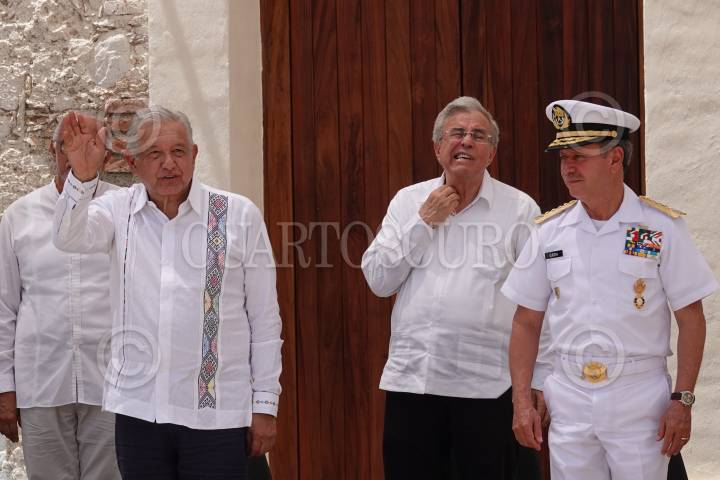 ISLAS MARÍAS, NAYARIT, 09ABRIL2022.- Andrés Manuel López Obrador, presidente Constitucional de los Estados Unidos Mexicanos, realizó una visita en el Museo de sitio en la Reserva Biosfera de las Islas Marías. En el evento lo acompañaron su esposa Beatriz Gutiérrez Müller; Rafael Ojeda Durán, secretario de Marina; Luis Cresencio Sandoval, secretario de la Defensa Nacional ; Rubén Rocha Moya, gobernador de Sinaloa; Miguel Ángel Navarro Quintero, gobernador de Nayarit; Miguel Torruco, secretario de Turismo, y María Luisa Albores, secretaria de Medio Ambiente y Recursos Naturales. FOTO: GRACIELA LÓPEZ /CUARTOSCURO.COM