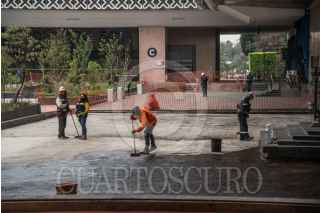 CIUDAD DE MÉXICO, 09ABRIL2022.- Trabajadores continúan con el cambio del piso de la explanada de la Cámara de Diputados por las filtraciones de agua que han afectado el basamento del recinto legislativo. FOTO: MARIO JASSO/CUARTOSCURO.COM