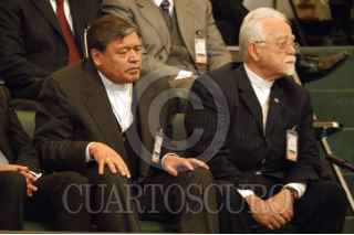 MÉXICO D.F. DICIEMBRE2006.- El cardenal Norberto Rivera acompañado de Antonio Chedraui arzobispo de la Iglesia Ortodoxa, durante la toma de protesta del Marcelo Ebrad Casaubón como nuevo jefe del gobierno capitalino. FOTO: GUILLERMO PEREA/CUARTOSCURO.COM