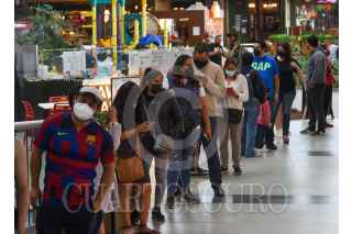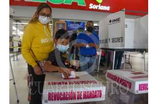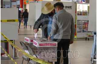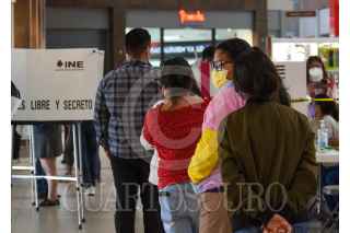 TOLUCA, ESTADO DE MÉXICO, 10ABRIL2022.- La casilla especial ubicada en Patio Toluca, una de las dos instaladas en Toluca tuvo una copiosa participación en la consulta de revocación de mandato, en todo momento se observó una larga fila para poder participar. FOTO: CRISANTA ESPINOSA AGUILAR /CUARTOSCURO.COM