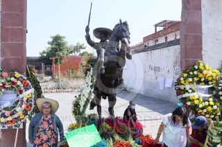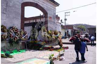 AYALA, MORELOS, 10ABRIL2022.- Opositores al Plan Integral Morelos, lideres de partidos políticos y autoridades municipales conmemoraron el 103 aniversario de la muerte del General Emiliano Zapata Salazar en la ex hacienda de Chinameca. FOTO: MARGARITO PÉREZ RETANA / CUARTOSCURO.COM