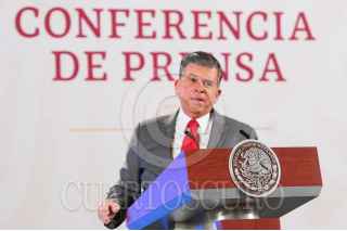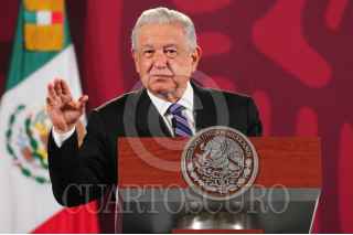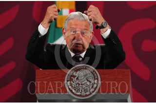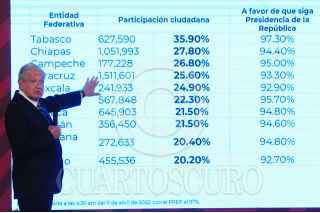 CIUDAD DE MÉXICO, 11ABRIL2022.- Andrés Manuel López Obrador, presidente de México, encabezó este lunes la conferencia matutina en Palacio Nacional donde habló de la participación y resultados de la Consulta Ciudadana de Revocación de Mandato, donde la gente que participó votó por la permanencia de su administración, el mandatario mexicano estuvo acompañado por Ricardo Sheffield, titular de PROFECO. FOTO: DANIEL AUGUSTO /CUARTOSCURO.COM