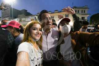 XALAPA, VERACRUZ, 11ABRIL2022.- El gobernador Cuitláhuac García y la presidenta del Tribunal Superior de Justicia, Isabel Romero, presumieron que en Veracruz se registraron más de un millón de votos por la consulta de revocación de mandato, mientras celebraron el cierre de la jornada en la plaza Sebastián Lerdo de Tejada. FOTO: YERANIA ROLÓN/CUARTOSCURO.COM