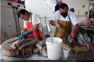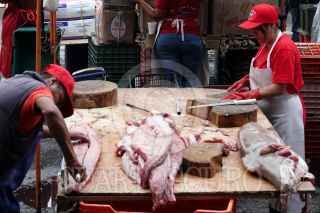 CIUDAD DE MÉXICO, 12ABIL2022.- Integrantes de la Agencia de Protección Sanitaria de la Ciudad de México (AGEPSA), de la SEDESA, realizaron un operativo de verificación sanitaria de la venta de pescados y mariscos en el Mercado de la Nueva Viga. FOTO: GRACIELA LÓPEZ /CUARTOSCURO.COM
