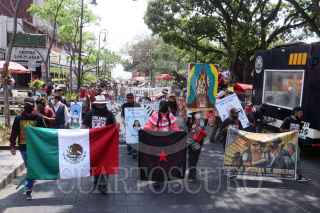 CUERNAVACA, MORELOS, 12ABRIL2022.- Llegada de la Caravana por la Vida y el Agua al zócalo de la capital de Morelos. La movilización que se apone a proyectos como la termoeléctrica de Huexca y la mina de oro a tajo abierto en Tetlama se pronunciaron contra los gobiernos que se han aliado con las empresas transnacionales que explotan los recursos, como la tierra, el agua y afectan las formas de vida comunitarias. También advirtieron de la relación gobierno-delincuencia organizada para hacer presión en la población que se opone a los proyectos. FOTO: MARGARITO PÉREZ RETANA / CUARTOSCURO.COM