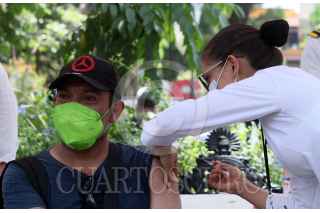 CUERNAVACA, MORELOS, 12ABRIL2022.- En el zócalo de la capital se instalo un modulo de aplicación de la vacuna contra el covid-19 para personas mayores de 18 años que no se han vacunado o les falta algún refuerzo. FOTO: MARGARITO PÉREZ RETANA / CUARTOSCURO.COM