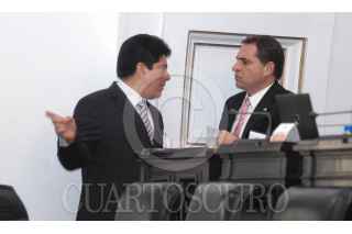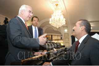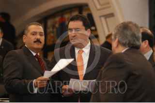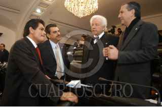 MÉXICO D.F. 05DICIEMBRE2006.- Los legisladores Mario López, Andrés Galvan, Cesar Leal y Heriberto Felix conversan durante la sesión de la Cámara de Senadores. FOTO: GERMÁN ROMERO/CUARTOSCURO.COM