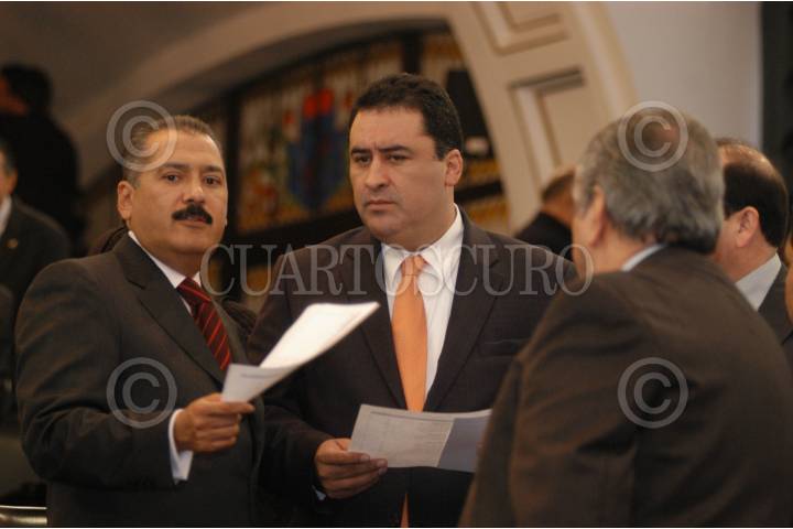 MÉXICO D.F. 05DICIEMBRE2006.- Los legisladores Mario López, Andrés Galvan, Cesar Leal y Heriberto Felix conversan durante la sesión de la Cámara de Senadores. FOTO: GERMÁN ROMERO/CUARTOSCURO.COM