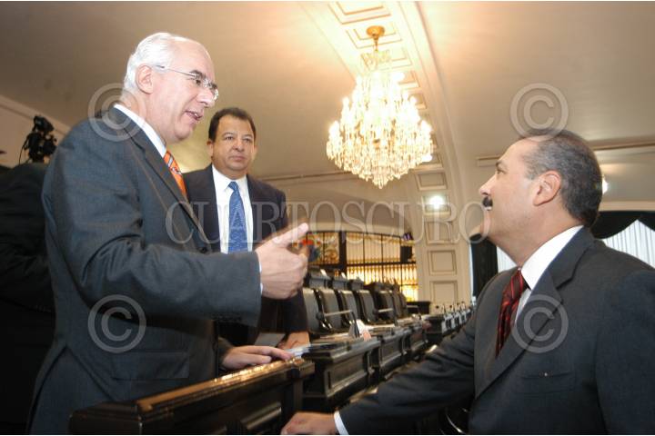 MÉXICO D.F. 05DICIEMBRE2006.- Los legisladores Mario López, Andrés Galvan, Cesar Leal y Heriberto Felix conversan durante la sesión de la Cámara de Senadores. FOTO: GERMÁN ROMERO/CUARTOSCURO.COM