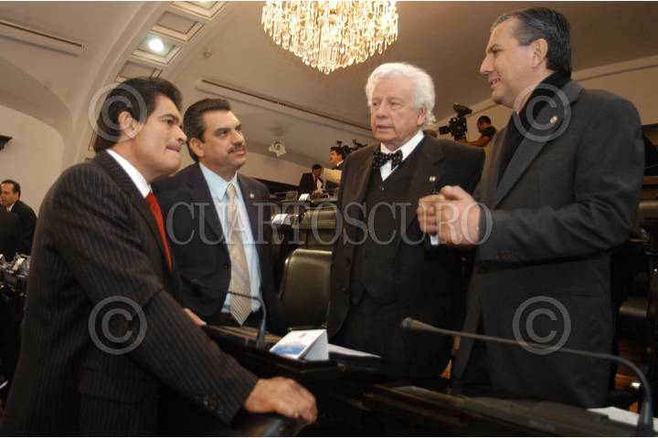 MÉXICO D.F. 05DICIEMBRE2006.- Los legisladores Mario López, Andrés Galvan, Cesar Leal y Heriberto Felix conversan durante la sesión de la Cámara de Senadores. FOTO: GERMÁN ROMERO/CUARTOSCURO.COM