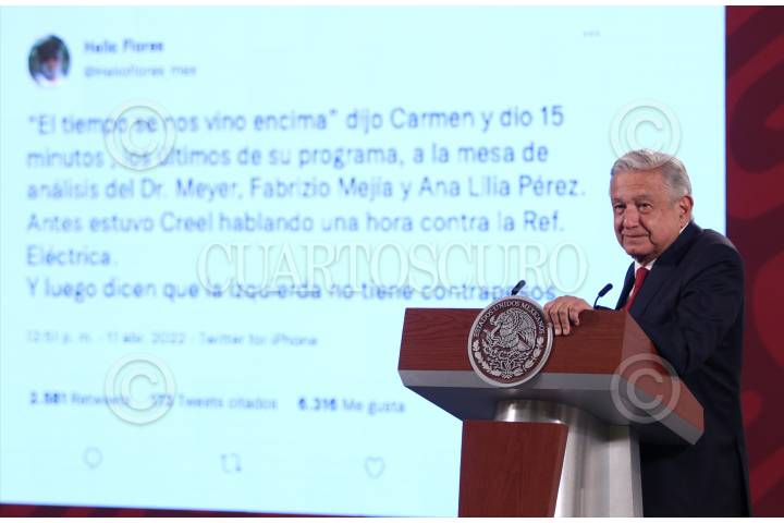 CIUDAD DE MÉXICO, 13ABRIL2022.- Andrés Manuel López Obrador, presidente de México acompañado de Ana Elizabeth García Vilchis durante conferencia matutina en Palacio Nacional. FOTO: ANDREA MURCIA /CUARTOSCURO.COM