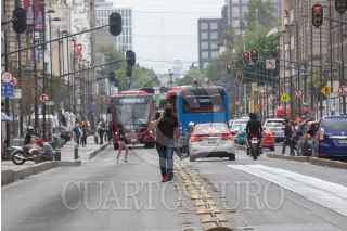 CIUDAD DE MÉXICO, 13ABRIL2022.- Intenso tráfico en avenida Balderas, luego de que fuera cerrado Eje Central, y elementos de transito canalizarán la circulación de los Trolebuses por esta arteria. Peatones tuvieron que sortear los coches para cruzar. FOTO: MOISÈS PABLO/CUARTOSCURO.COM