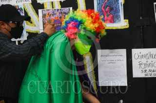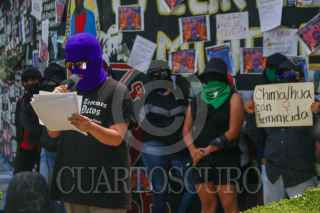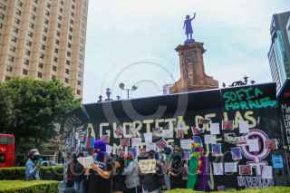 CIUDAD DE MÉXICO. 13ABRIL2022.- Feministas que fueron agredidas en Chimalhuacán, Estado de México; se manifestaron al pie de la Glorieta de las mujeres que Luchan. Ahí demandaron que sean detenidos los policías que las agredieron el pasado 3 de abril en el municipio Mexiquense. FOTO: VICTORIA VALTIERRA/CUARTOSCURO.COM