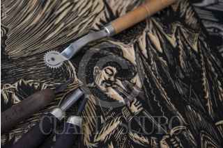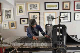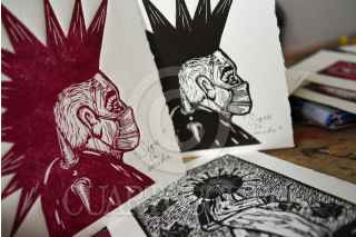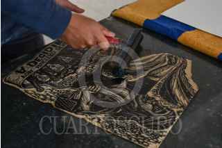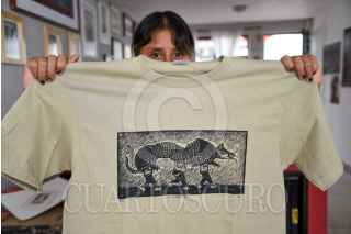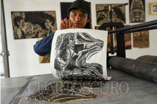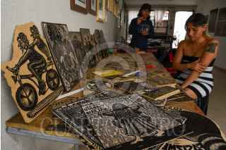TOLUCA, ESTADO DE MÉXICO, 13ABRIL2022.- Uva y Reyna son integrantes del colectivo Unión Revolucionaria de Trabajadores del Arte URTARTE que nace en el estado de Oaxaca, y de la Biblioteca y Taller La Chispa, ubicada en Toluca, aunque sus inicios fueron en el municipio de Temoaya, tienen diversas actividades como música, teatro, poesía y sobre todo se han consolidado en las Artes Gráficas a nivel nacional, participando en diversos procesos artísticos de forma individual y colectiva teniendo presencia en diversos museos tales como el Museo Nacional de la Estampa, entre otros. Dentro de las actividades que ofrecen en La Chispa son grabado, pintura, dibujo, música y teatro, los cuales en su mayoría son gratuitos, y los que tienen costo de recuperación es a un precio accesible esto para poder adquirir materiales; durante la semana realizan sus talleres de manera normal y los fines de semana regularmente acuden a comunidades acercando el arte a la población que vive en zonas rurales, el público al que se dirigen es de todas las edades ya que para ellos “el Arte no tiene edad”. A su llegada al Valle de Toluca comenzaron a involucrarse en movimientos sociales como el alza del pasaje en el transporte público, los movimientos estudiantiles en la UAEM y las manifestaciones feministas que se han vivido en los últimos años, su arte en grabado es sobresaliente en estas movimientos que representa de manera gráfica el sentir y pensar de la población, sobre todo en la lucha feminista buscando que las mujeres se sientan identificadas y parte de este movimiento, representan temas sociales, tradiciones, movimientos dándoles voz de manera gráfica. Solventan sus actividades con la venta de su arte, ya sea en papel o ropa que ofertan de manera física en su taller o en sus redes sociales en donde se encuentran cómo URTARTE Edomex y La Chispa. FOTO: CRISANTA ESPINOSA AGUILAR /CUARTOSCURO.COM