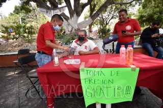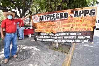 CHILPANCINGO, GUERRERO, 13ABRIL2022.- Trabajadores de la Secretaría de Protección Civil del Estado de Guerrero (SETPCEGRO) instalaron un centro de acopio de víveres para hidratación y herramientas para apoyar a sus compañeros brigadistas que se encuentran combatiendo incendios forestales en distintas partes del estado. También ofrecen de manera gratuita la toma de presión para los ciudadanos que así lo deseen y que gusten donar a esta causa. Todo lo recaudado será distribuido de acuerdo a los siniestros que se estén combatiendo en estos momentos. Dicho centro de acopio tendrá un horario de 10 de la mañana a 3 de la tarde en la alameda 'Francisco Grabados Maldonado', justo en la esquina de la avenida Vicente Guerrero y la calle Nicolás Catalán. FOTO: DASSAEV TÉLLEZ ADAME/CUARTOSCURO.COM