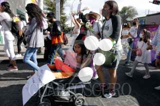 QUERÉTARO, QUERÉTARO, 13ABRIL2022.- Decenas de feministas marcharon por las calles y se manifestaron en la ciudad de Queretaro, exigiendo justicia para las mujeres desaparecidas, asesinadas y violentadas. En el Jardín Guerrero se congregaron y durante la demostración, se colocaron velas y se leyeron los nombres de distintas mujeres que fueron víctima de violencia. FOTO: CÉSAR GÓMEZ/CUARTOSCURO.COM