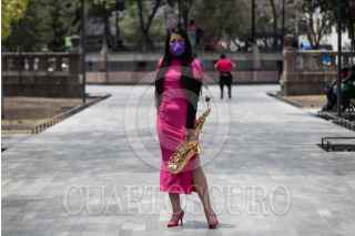 CIUDAD DE MÉXICO, 14ABRIL2022.- La saxofonista María Elena Ríos, en 2020 ingreso al Mecanismo de Protección para personas Defensoras y periodistas esto por haber sido víctima de tentativa de feminicidio por su ex pareja el cual después de 3 años sigue prófugo. Pero a través de un correo electrónico la semana pasada fue informada que se le reducirá la protección federal limitándose a solo Oaxaca aunque la mayoría de su vida laboral se encuentra en la Ciudad de México. Esto significa dejarla sin protección personal, pues un elemento de seguridad la resguardaba y vigilaba desde julio del 2020. A finales de mes habrá una reunión en Gobernación donde se decidirá el futuro de la protección de María Elena. Mientras tanto solo se le protegerá en el Estado de Oaxaca. El 9 de septiembre de 2019 la vida de María Elena cambio para siempre, fue víctima de ataque de acido, desde entonces ella ha pasado por procesos de recuperación física, emocional, laboral y económica. La joven de 28 años ha logrado poco a poco recuperar la movilidad para poder usar su saxofón y la seguridad y amor por ella para comenzar a vestir como antes lo hacía. Después de presentaciones con artistas internacionales como Maldita vecindad, Malena (llamada así por sus seres queridos) afirmó que lo que le pasa es algo común con las víctimas. “Nos quieren en nuestra casa con miedo y sin rehacer nuestras vidas, pero cuando empezamos a recuperarla ya no merecemos el cuidado. Eso es lo que afirman ellos con estás acciones”, señaló. FOTO: ANDREA MURCIA /CUARTOSCURO.COM