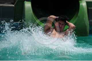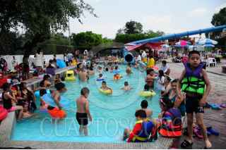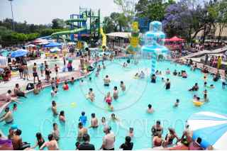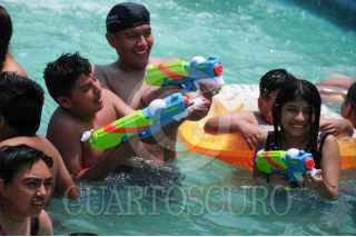 CIUDAD DE MÉXICO, 14ABRIL2022.- Vacacionistas aprovechan el puente vacacional de la Semana Santa para visitar los balnearios capitalinos y mitigar también las altas temperaturas que se mantienen en la ciudad. El Balneario Elba, en la Alcaldía Iztapalapa, recibe a decenas de familias que disfrutan de las tres albercas y los toboganes con los que cuenta el lugar. FOTO: DANIEL AUGUSTO /CUARTOSCURO.COM