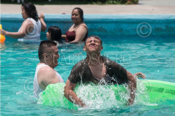 CIUDAD DE MÉXICO, 14ABRIL2022.- Decenas de personas aprovechan el puente de semana santa en el balneario "Olímpico" de la colonia Pantitlán. FOTO: MARIO JASSO/CUARTOSCURO.COM