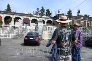 CIUDAD DE MÉXICO, 15ABRIL2022. Admiradores de Pedro Infante se encontraron a las afueras del Panteón Jardín, tras encontrar una manta donde se lee que por motivos de la pandemia no es posible realizar los homenaje por el 65 aniversario luctuoso del Ídolo de Guamúchil. FOTO: EDGAR NEGRETE/CUARTOSCURO.COM