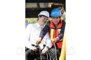 MÉXICO, D.F. 06DICIEMBRE2006. El jefe de gobierno capitalino, Marcelo Ebrard Casaubón visitó la delegación Iztapalapa, donde presentó el plan para mejoras de la distribucuón del agua potable en la zona. En la imagen, el funcionario hecha a andar una máquina excavadora para comenzar con las obras. FOTO: PAOLA HIDALGO/CUARTOSCURO.COM