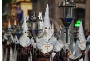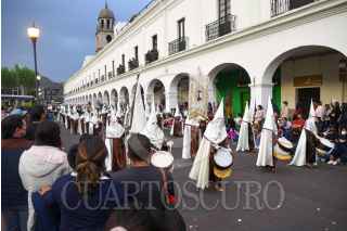 TOLUCA, ESTADO DE MÉXICO, 15ABRIL2022.- Este Viernes Santo regreso a las calles de Toluca la Procesión del Silencio y la Esperanza después de suspenderse durante dos años por la pandemia de COVID-19, con la participación de 25 cofradías de la Arquidiócesis de Toluca, este año está muestra de fe será ofrecida en honor a las personas que murieron por COVID-19. FOTO: CRISANTA ESPINOSA AGUILAR /CUARTOSCURO.COM