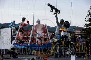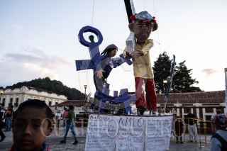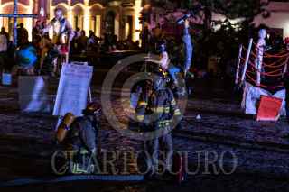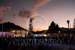 SAN CRISTÓBAL DE LAS CASAS, CHIAPAS, 16ABRIL2022.- Se llevo a cabo tradicional quema de Judas en el centro de la ciudad colonial de San Cristóbal, esta actividad se ha realizado en esta region desde 1984, cunado el periodista y caricaturista Hugo Robles la instauro en el ahora Pueblo Mágico. Con satiras politicas y mostrando la realidad de nuestro país, artesanos de la pirotecnia crearon siete Judas que fueron quemados ya entrada la noche y observados por cientos de personas. FOTO: ISABEL MATEOS /CUARTOSCURO.COM
