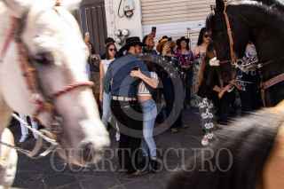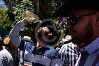 JEREZ, ZACATECAS, 17ABRIL2022.- Miles de personas disfrutaron del sábado de Gloria en el pueblo mágico. Después de dos años, tras las restricciones por la pandemia, se realizó de nueva cuenta la tradicional cabalgata por las principales calles de la ciudad. Algunos de los asistentes acompañaron con música de banda y norteña, además de las cervezas, mezcal o tequila. FOTO: ADOLFO VLADIMIR /CUARTOSCURO.COM
