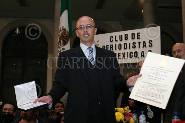 MÉXICO, D.F., 06DICIEMBRE2006.-El periodista Alberto Tinoco Guadarrama, recibió un premio por parte del Premio Nacional de Periodismo del Club de Periodista a su labor informativa. FOTO: MOISÉS PABLO/CUARTOSCURO.COM