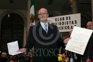 MÉXICO, D.F., 06DICIEMBRE2006.-El periodista Alberto Tinoco Guadarrama, recibió un premio por parte del Premio Nacional de Periodismo del Club de Periodista a su labor informativa. FOTO: MOISÉS PABLO/CUARTOSCURO.COM